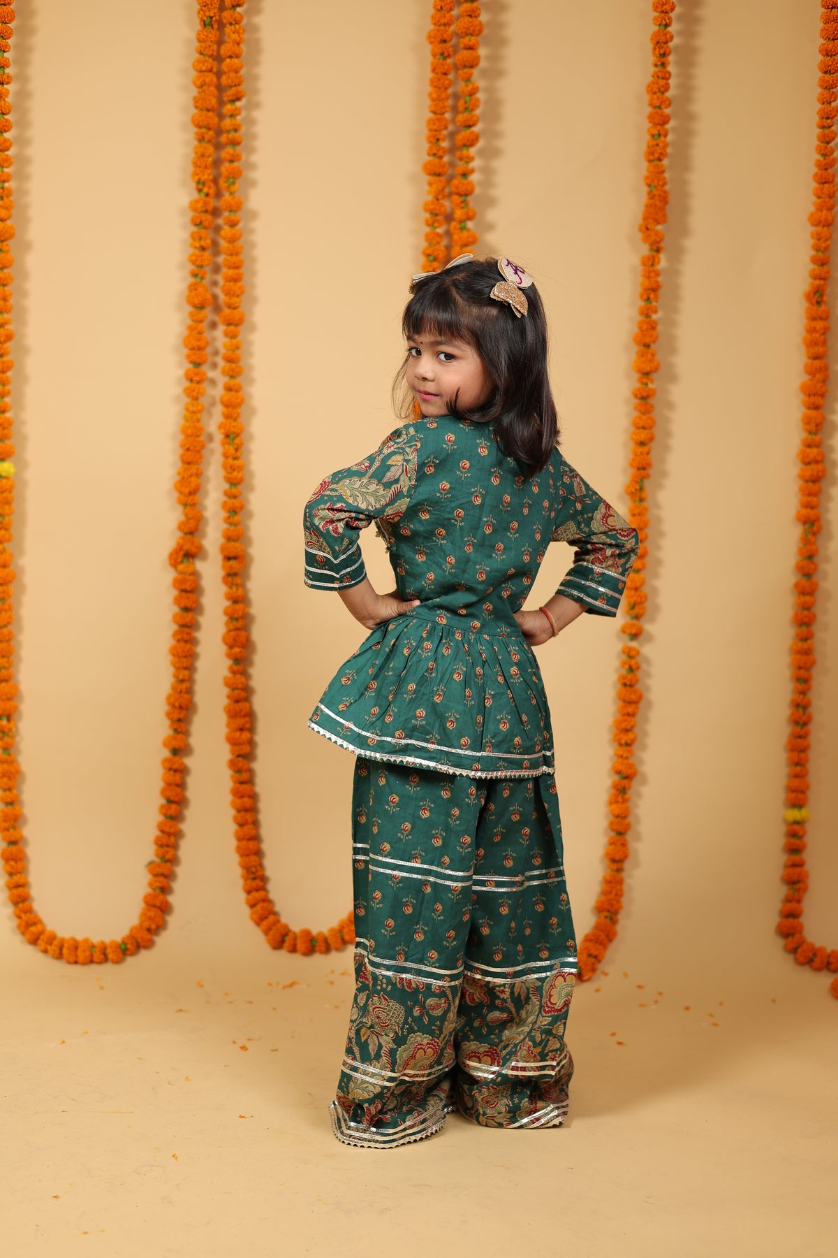 Emerald Green Kurta Plazo Set with Koti Style Cut