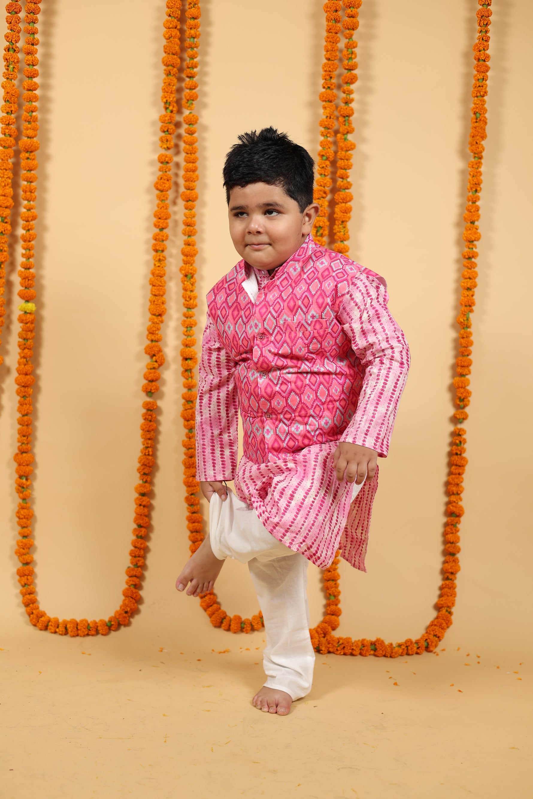 Pink Ikkat Inspired Print Jacket with Kurta & Pajama