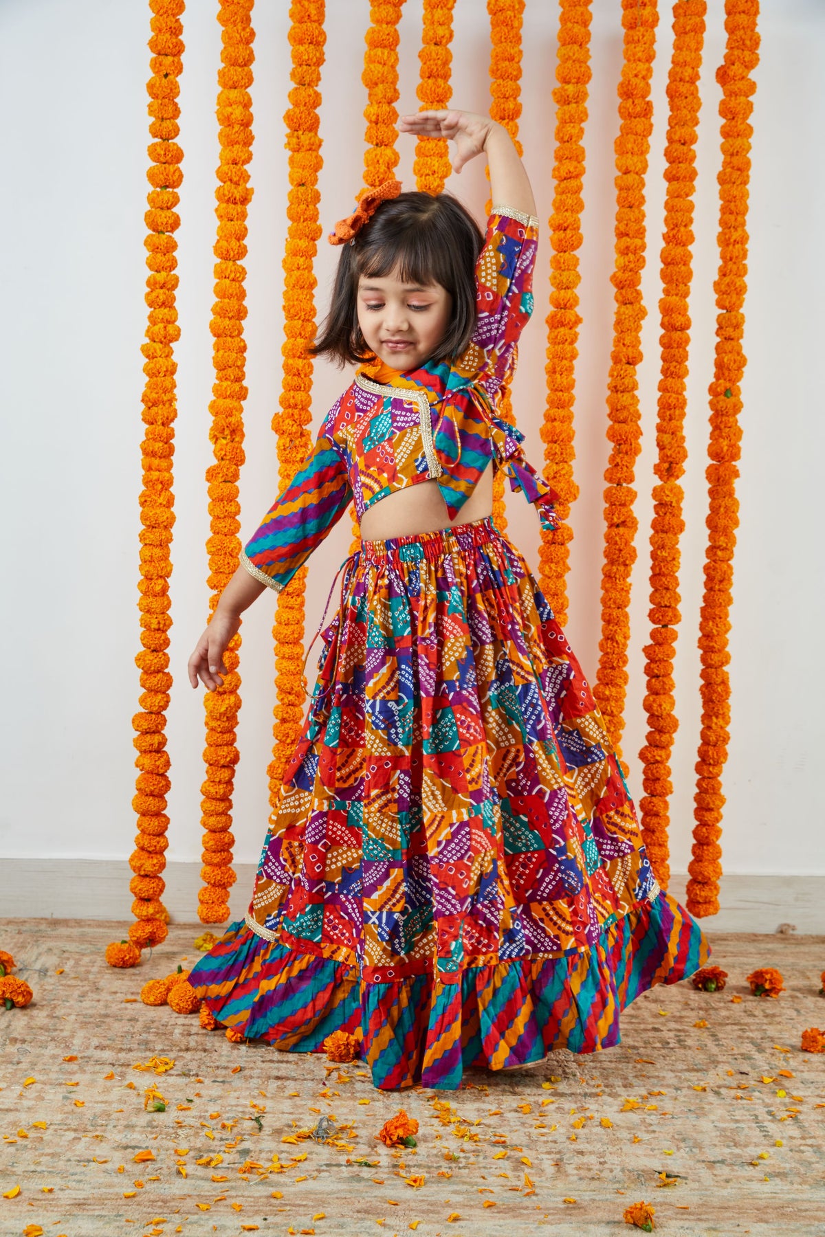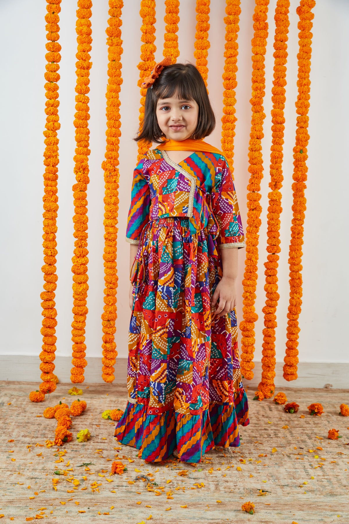 Introducing our Rangeela Lehenga Choli Set for girls. Crafted from premium cotton fabric with ethnic prints and AZO-free natural dyes, it offers comfort and style. Our artisans meticulously handcraft each piece, ensuring exceptional craftsmanship. Perfect for special occasions and festivals, making your little one stand out in this eco-friendly attire. Order now to add a touch of tradition and style to their wardrobe.