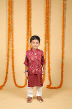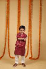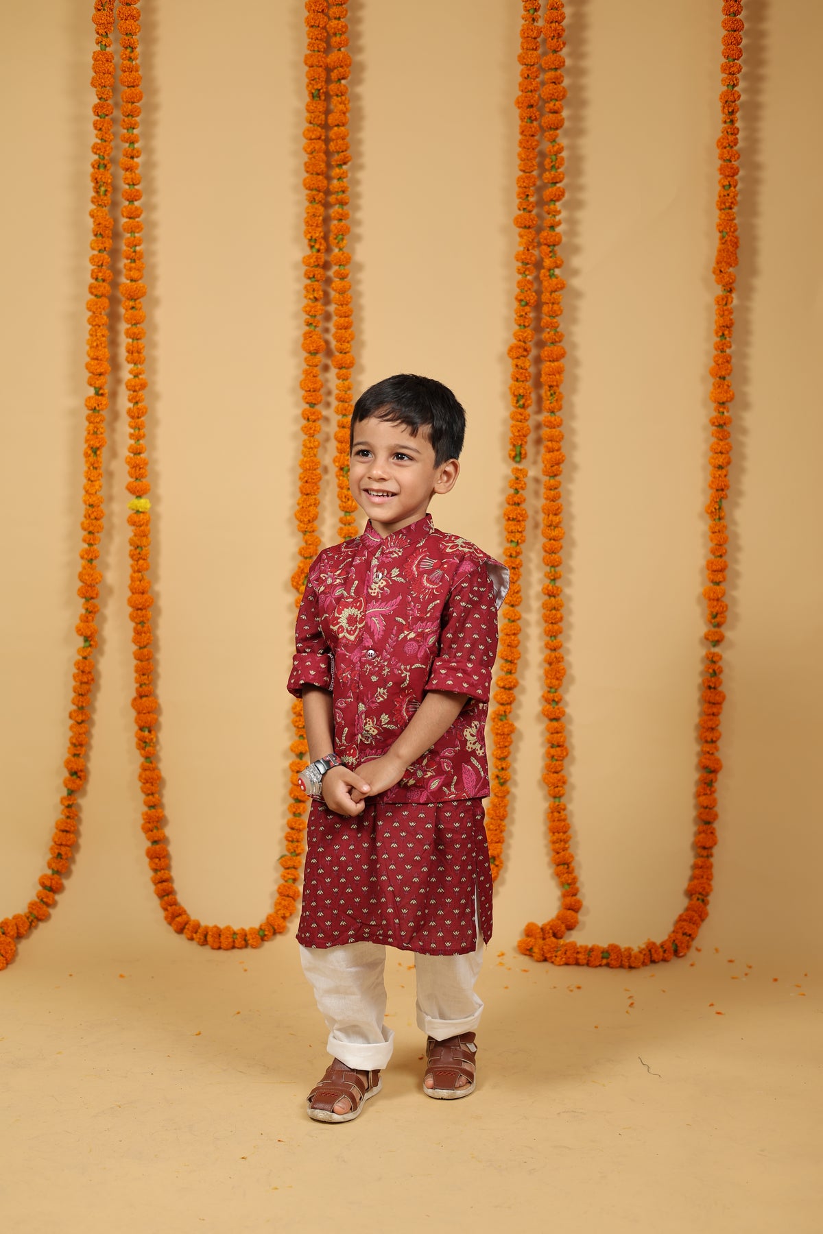Celebrate tradition with our Ruby Red Phool Print Jacket and Zig Zag Kurta Pajama Set, a vibrant ensemble inspired by Indian festivals. The unique color combination and lively patterns bring a fresh, stylish touch to your little one’s look. Crafted from premium cotton fabric with AZO-free natural dyes, this outfit ensures all-day comfort while being kind to the skin and the planet.