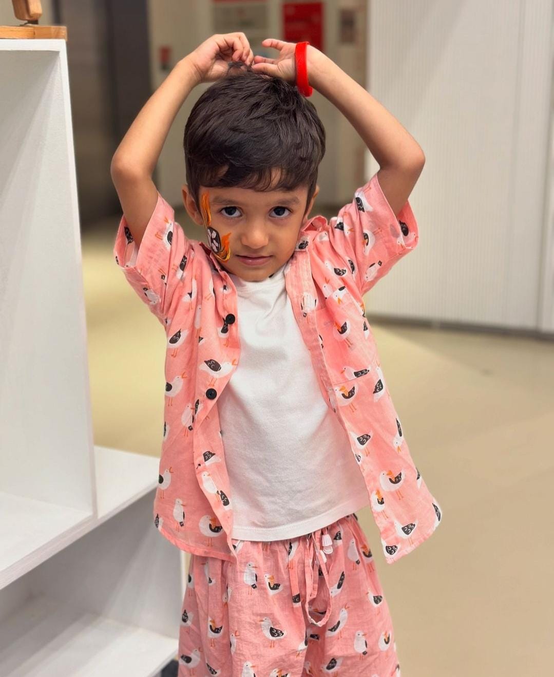 Let your little one explore in style with the Feathered Friends Co-ord Set. Order now to add a dash of playful charm to his wardrobe!
