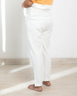 Designed for gentle, non-compressive support, these organic cotton maternity pants feature a soft, knitted belly band that adapts to your growing body without pressure or discomfort. The woven lower body ensures breathability, while a simple tie-up closure offers a customizable fit—eliminating elastic itches and restrictions. Dyed with healing herbs, these pants bring Ayurvastra wellness to everyday wear.