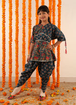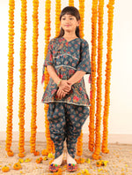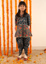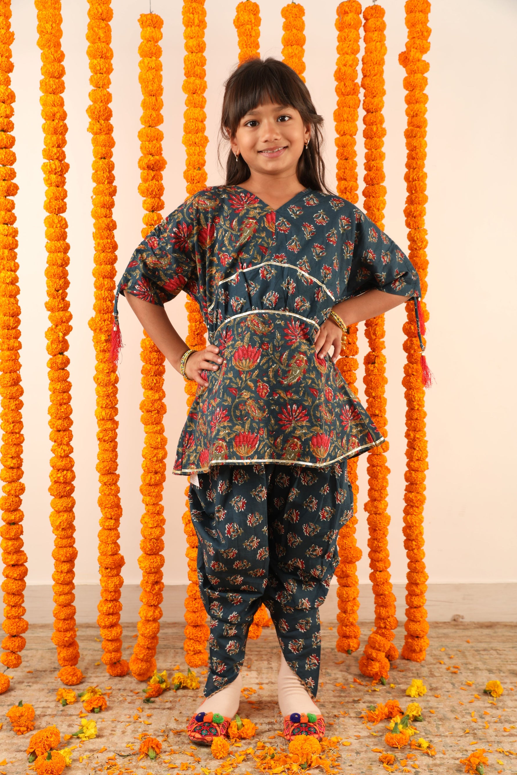 Introducing our Midnight Blue Garden Dhoti Kurta Set for girls. Crafted from premium cotton fabric with ethnic prints and AZO-free natural dyes, it offers comfort and style. Our artisans meticulously handcraft each piece, ensuring exceptional craftsmanship. Perfect for special occasions and festivals, making your little one stand out in this eco-friendly attire. Order now to add a touch of tradition and style to their wardrobe.