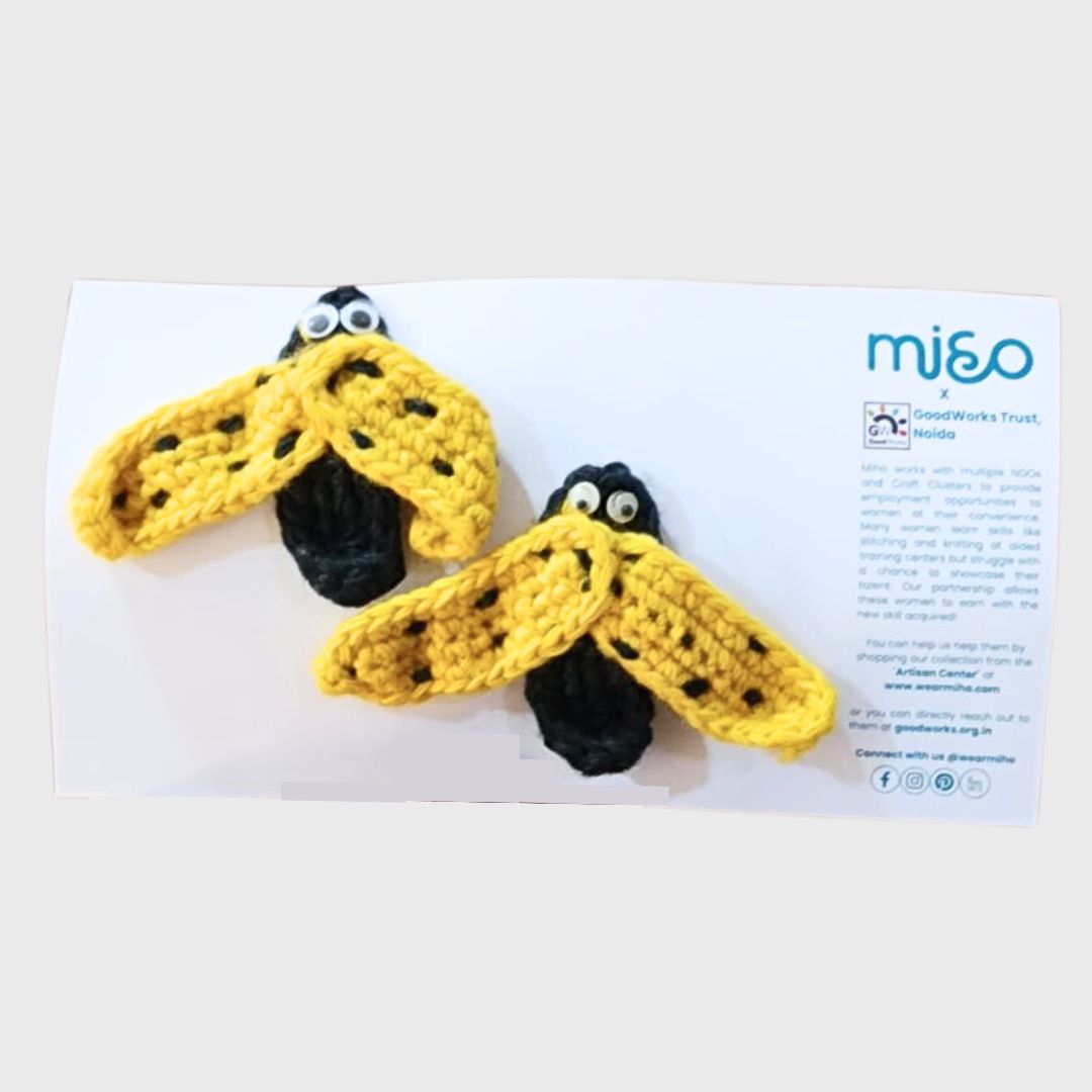 We upcycled small strands of Herbal Dyed Merino Wool Yarn which otherwise would have gone to waste with our Crochet Cluster in Saharanpur and Skill Partner @goodworkstrust into these beautiful, colourful and fun Hair Pins and Rubberbands!